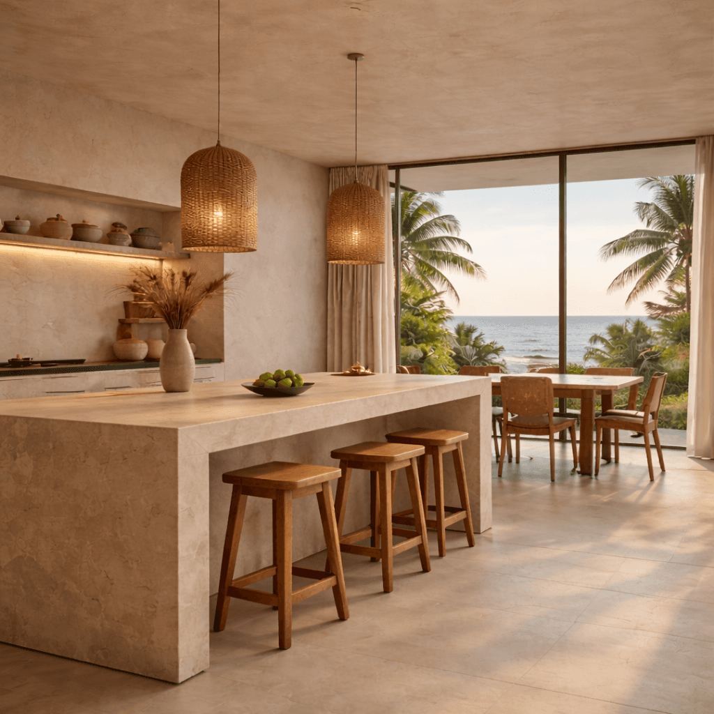 Laterite House explores a contemporary interpretation of Kerala’s traditional building material. Locally sourced laterite stone forms the primary structure, grounding the house within its coastal landscape. Clean volumes, shaded terraces, and carefully framed openings create a balance between solid mass and open space, allowing light, breeze, and texture to shape the experience of the home.